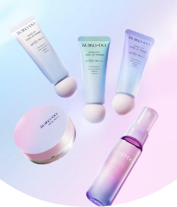 *1 商品により一部配合成分、表示名称が異なります。 <水光堂 水光密着メイクアップベースUVの場合>グルタチオン(整肌成分)、ナイアシンアミド(整肌成分)、DNA-Na(整肌成分)、カルボキシメチル-β-グルカンNa(整肌成分)、ツボクサ葉/茎エキス(整肌成分)、アラントイン(整肌成分)、加水分解ヒアルロン酸(保湿成分)、セラミドNP・セラミドNG・セラミドAP(すべて保湿成分)、パンテノール(整肌成分) *2 グルタチオン(整肌成分) *3 ナイアシンアミド(整肌成分) *4 DNA-Na(整肌成分)*5 カルボキシメチル-β-グルカンNa (整肌成分) *6 ツボクサ葉/茎エキス(整肌成分) *7 アラントイン(整肌成分) *8 加水分解ヒアルロン酸(保湿成分) *9 セラミドNP・セラミドNG・セラミドAP(すべて保湿成分) *10 パンテノール(整肌成分) ※イメージ図